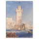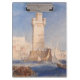 Rhodes. Joseph Mallord William Turner (1775 – 1851). A lovely seascape in pink and blue tones. In the foreground are boats and ships in the bay near the city walls. in the middle ground there is a high tower. In the background there is a city with stone houses. Reproduction of famous works of art images in the public domain.