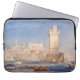 Rhodes. Joseph Mallord William Turner (1775 – 1851). A lovely seascape in pink and blue tones. In the foreground are boats and ships in the bay near the city walls. in the middle ground there is a high tower. In the background there is a city with stone houses. Reproduction of famous works of art images in the public domain.