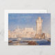 Rhodes. Joseph Mallord William Turner (1775 – 1851). A lovely seascape in pink and blue tones. In the foreground are boats and ships in the bay near the city walls. in the middle ground there is a high tower. In the background there is a city with stone houses. Reproduction of famous works of art images in the public domain.