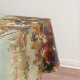 I am very pleased with this purchase. The quality is good, it is heavy and the image decorating it is brilliant and very eye-catching. When I first laid eyes on this tablecloth, still folded and in the transparent covering, it brought a smile to my face and I knew right away it was a good choice. A few days later my wife replaced our old tablecloth with this little gem and was quite satisfied. She noted that it is thick and fits the table very well with just enough hang over (although our dining table is extended by a traditional leaf which we keep in place even if we are not having guests over) and stays put instead of blowing all over the place. The image decorating this tablecloth is brilliant and very eye-catching. It looks even better than it appeared online.