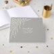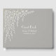 Elegant light grayish taupe coloured wedding guest book, with graphics of white and wheat coloured willow tree branches. Personalise the white text fields for your special day.