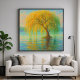 Artwork of a willow tree surrounded by a body of water; in a pastel painting style. A majestic willow tree standing peacefully amidst shimmering water. This artwork captures a solitary willow, its luminous, sun-kissed leaves a riot of yellows and oranges, gently weeping into the dappled water below. The surface of the water is alive with strokes of turquoise, sapphire, and reflections of the golden canopy, creating a mesmerising display of light. This artwork is a celebration of natural beauty and the "magic" of light on water, ideal for those who appreciate painterly detail and a soothing colour palette. This piece can be customised, printed, and or downloaded.