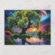 Willow tree under a Full Moon N Starry sky Sunset Postcard