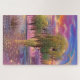 Willow trees at Pink sunset by the pond Jigsaw Puzzle