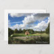 Postcard of old dovecote in countryside under blue sky with clouds in Wiltshire, England