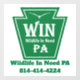 Wildlife In Need PA window decal with logo, our full name and phone number on a white background.