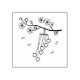 Simple illustration of a blossoming branch with heart-shaped wind chime and some petals blown in the wind.