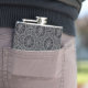 The flask itself is fine. It’s a cheap flask, obviously bought in bulk, however am prepared to overlook that. Given that it is a personalized item, I would have liked to have seen gift boxing instead of the generic packaging. Terrible printing, and/or quality. It’s a cheap, tacky vinyl. It is not cut straight and is also applied in a way that it is overhanging the bottom, causing the glue to catch on items and it will eventually roll and tear, damaging the wrap.
