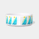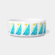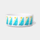 For sailing kitties, to go with their peoples' tableware...the original artwork by ZoeSPEAK on this small Water Bowl has a tropical feel and features twelve wind filled turquoise sails on marine blue waves under bright yellow suns. On the sails are circular white shapes like reflected ripples on the water. Under the suns, along the diagonal edges of the sails, are the words "sail away", in lime green. In the centre of the design is a pink paw print over marine blue text which reads "Moriah's Water Bowl". This text is set to personalise with your own pet’s name or delete if you wish. A fresh and breezy look for a kitten on a boat, in a cottage at the beach, a tropical island...