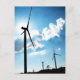 Wind turbine in the back light of the sun with blue sky and clouds.