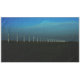 Windfarm - Photograph of the Blesdijk windfarm in the north of the Netherlands showing a row of white wind turbines against a green field and bold blue sky.