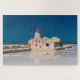 Photo jigsaw puzzle with the salt museum with a traditional windmill with a red roof and reflection in the salt pans at the salina of Mozia at the west coast of Sicily between Trapani and Marsala.