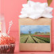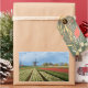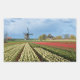 Retangular photo sticker of a landscape with a windmill and yellow and red tulips under a cloudy sky in the Dutch countryside on a beautiful springtime day in the Bulb Region, the Netherlands.