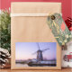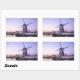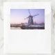 Rectangular sticker of a windmill during a purple sunrise in winter with a thin layer of snow and ice on the water at the UNESCO world heritage site Kinderdijk in the Netherlands.