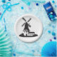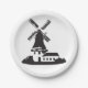 A black silhouette of a windmill building. This design looks really effective on these Paper Plates