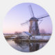 Windmill during sunrise in Holland round sticker