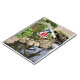 Very cute windmill garden decoration next to a pond. You can see the reflection in the water. Photo taken April 2019 in Woodburn, Oregon.