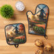 Windmill in Dutch Countryside by River with Tulips Oven Mitt & Pot Holder Set