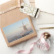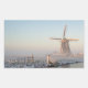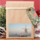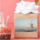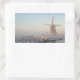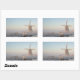 Rectangular sticker with a traditional dutch windmill covered in snow in a rural landscape in Aarlanderveen, the Netherlands, in winter in the warm early morning light at sunrise. A great souvenir!