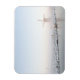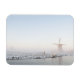 Rectangular photo magnet with a windmill in the snow next to a canal during a foggy sunrise in winter in the Netherlands