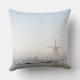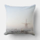 Throw pillow of a windmill in the snow next to a canal during a foggy sunrise in winter in the Netherlands