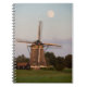 Notebook with a windmill under a full moon in the beginning of the night in the Netherlands.