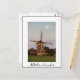 Postcard of a windmill under a full moon in the beginning of the night in the Netherlands with a white border and the text: 'Netherlands'.