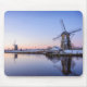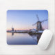 Mousepad of a sunrise over the windmills of Kinderdijk in the Netherlands in winter with some snow and ice on the water.