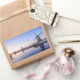 Rectangular photo sticker of a sunrise over the windmills of Kinderdijk in the Netherlands in winter with some snow and ice on the water.