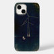 An original artwork on a phone case. This artwork features an adult and child walking towards two large windmills. This painting was created to depict climate change and the struggle for society to move towards sustainable energy sources. The is a photo of my nephew and I walking through a snow covered field towards a windmill in Ontario.