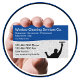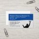 Modern window cleaning editable business cards designed with image of a window washer and water bubbles graphic in the background in a cool design you can customise online. Created for a independent window cleaner small business or large corporate company.