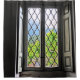 ADD A "WINDOW" WITH A VIEW TO YOUR BATHROOM DECOR WITH THIS SHOWER CURTAIN FEATURING A PHOTO OF A TALL WINDOW WITH OPENED INDOOR SHUTTERS. PHOTO WITH DIGITAL EFFECTS APPLIED FOR A PAINTERLY LOOK.