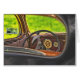 This photo of a classic car's interior was taken through the roll down rear window.