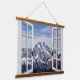 Create a tranquil atmosphere with this beautiful window view snow capped mountains wall tapestry. Would look great in a windowless room or office.