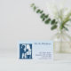 Business card for window washing or housekeeping services. This design features a blue male silhouette happily washing a window. Blue sky with clouds image on the backside, which can be easily removed.