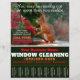 Promote and advertise your WINDOW CLEANING business with this professionally designed and eye-catching 8x11 flyer. All text and colours are fully CUSTOMIZABLE. Features cute squirrel near flowers seen through dirty glass. Hang in local libraries, parks, supermarkets, restaurants, delis, pizzerias...anywhere there is a bulletin board. These flyers are proven to attract attention. See coordinating marketing materials. Contact me for help in customising this flyer or for additional matching products if necessary. Vehicle graphics/magnets can be made available upon request. GENEROUS BULK DISCOUNTS APPLY.