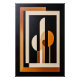 Rectangles and circular shapes in warm tones intertwine within a deep black space, evoking portals and hidden dimensions. The artwork conveys geometric balance and mystery, where every line becomes a passage to new perceptions.