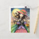 Winds of Halloween Witch Tabby Cat Art Postcard