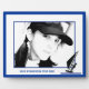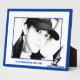 Windsurfer on board black, blue windsurfing custom plaque featuring a minimalist pictogram icon of a black silhouette windsurfer and your text on white background with blue border. Personalise it and change text with monogram, name or your message. See lots of designs at our Sports Gifts store.