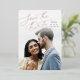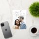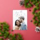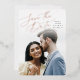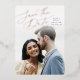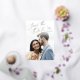 A simple and elegant design with your wedding details aligned at the top, this vertical photo save the date features ethereal hand lettered script in real rose gold foil. Personalise with your names, wedding date, and location alongside, and add additional details to the back. Due to the delicate nature of the lettering, this style is recommended for vertical photos with ample light or white space at the top.