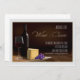 Wine and Cheese party invitation with graphics of wine glass full of wine, wine bottle and cheese.