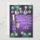 If you're looking for a festive and beautiful Christmas holiday invitation, look no further! This holiday invitation card has the design of garland, Christmas twinkle lights and silver bulbs. The background is purple. And then there is a design of a wine bottle and wine glass. It's charming, fun and your guests will love it!