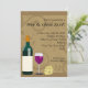 Rich and elegant modern contemporary wine and cheese tasting party invitations! Great to celebrate any business after hours cocktail or personal special occasion. Sandy brown with wine bottle, glass and swiss cheese sample, with swirly vines background. Customise online with your event details.