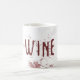 Wine decorative text or word of dark red or burgundy colour and dark red splatters and blots imitating the wine stains. Prints and gifts for fun and good mood. Horizontal or landscape orientated products and souvenirs.