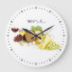 Elegant wine-themed clock for a wine connoisseur. The clock features wine, grapes, and cheeses for an appetising design! Perfect clock for a kitchen nook, dining area, or a home wine bar.