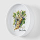 This wall clock is shown in a stylish wine country grapes print.