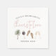 Get the party started with these cute custom napkins that are easy to personalise for your bachelorette party, hen night, or girls' weekend! Boho wine country style design features delicate watercolor illustrations of sandals, a palm tree, champagne glasses and red wine with dusty rose pink accent lettering. Personalise with three lines of custom text; shown with the event name, "cheers to love", and the location and date.