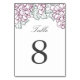 Wine country chic table number cards in shades of cabernet plum, hunter green and charcoal grey feature your table number with a top border of vintage etched-style grape clusters and leaves. Design repeats on reverse side. Coordinates with our Wine Country wedding invitation suite for vineyard and winery weddings or wine themed events.