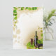 Invitation with design of red wine still life and decorated with fresh grapevine branches as background for your text