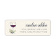 Creamy off-white return address labels feature your name and return address in smoky blue-grey lettering alongside a watercolor illustration of a glass of red wine adorned with olive branches.